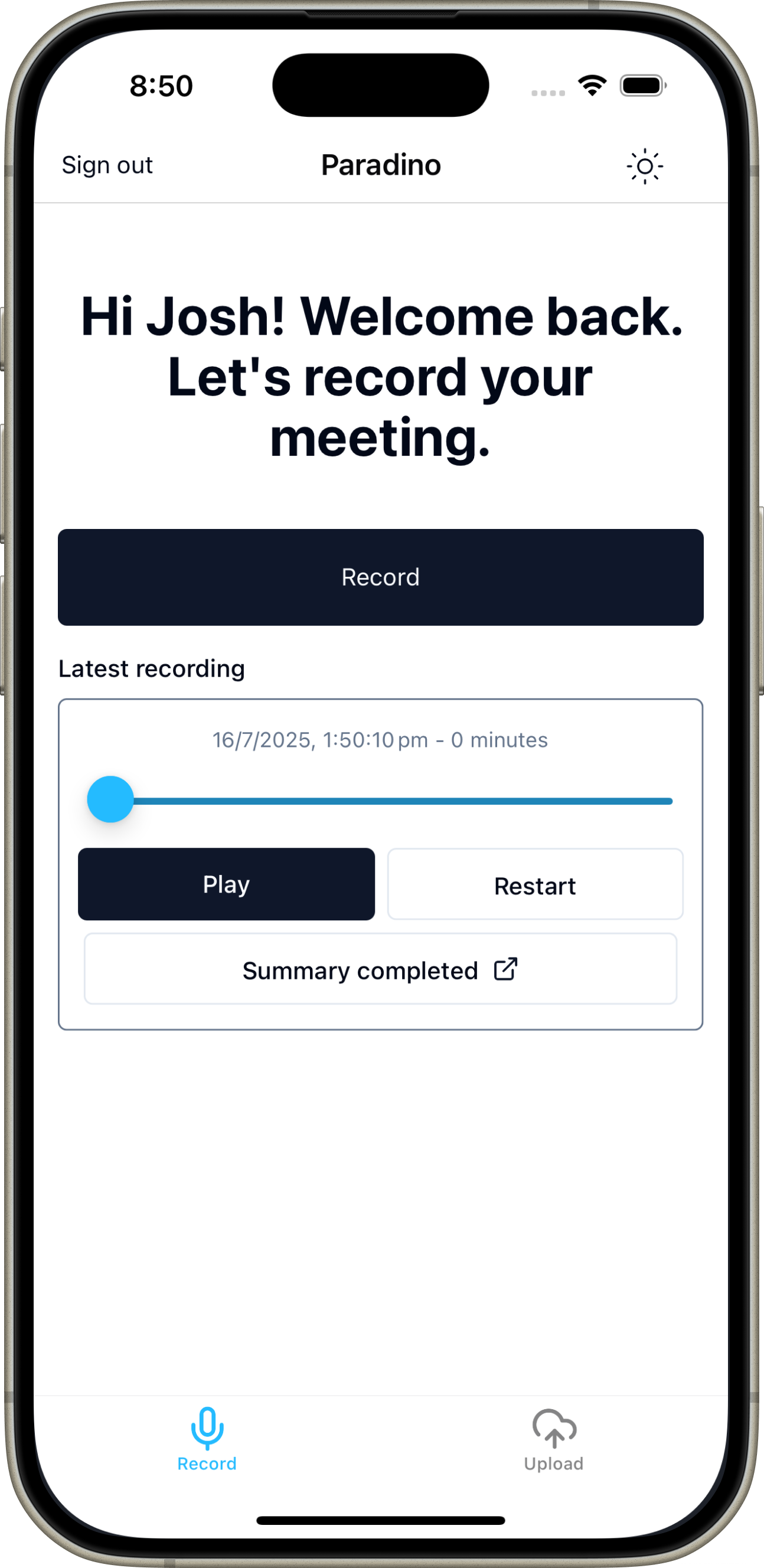 Paradino takes your meeting recording or transcript and uses AI to generate file notes in minutes. For in person meetings, record live in Paradino. Collaborate with our AI agent, to generate strategies, paraplanning requests, RoAs and SoAs in real time.